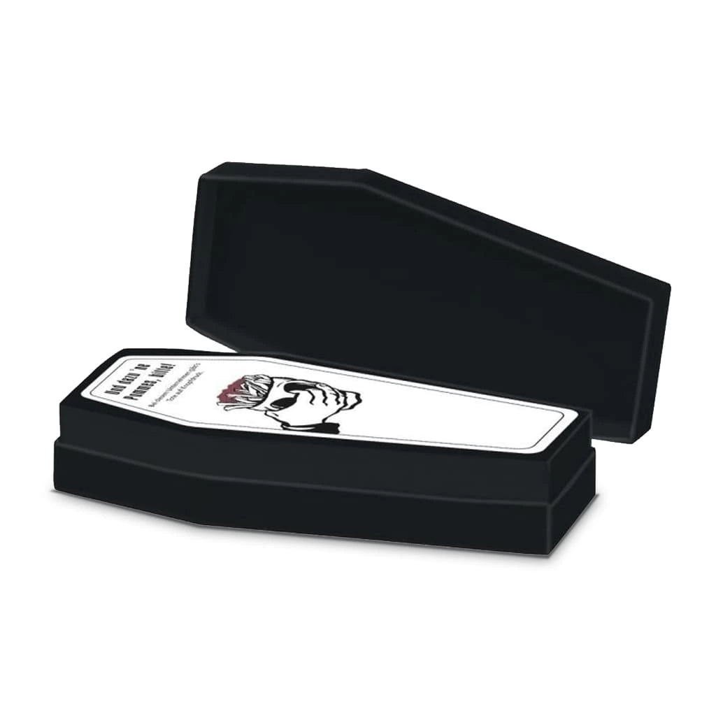 Para que el juego se sienta aún más espeluznante, las cartas tienen forma de ataúd y vienen en una caja de alta calidad con forma de ataúd. ¡Un toque realmente escalofriante para las historias de rompecabezas!