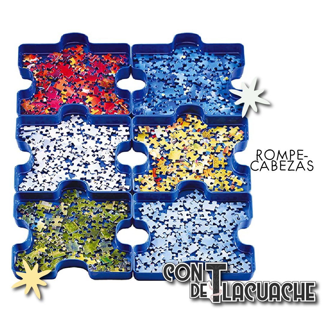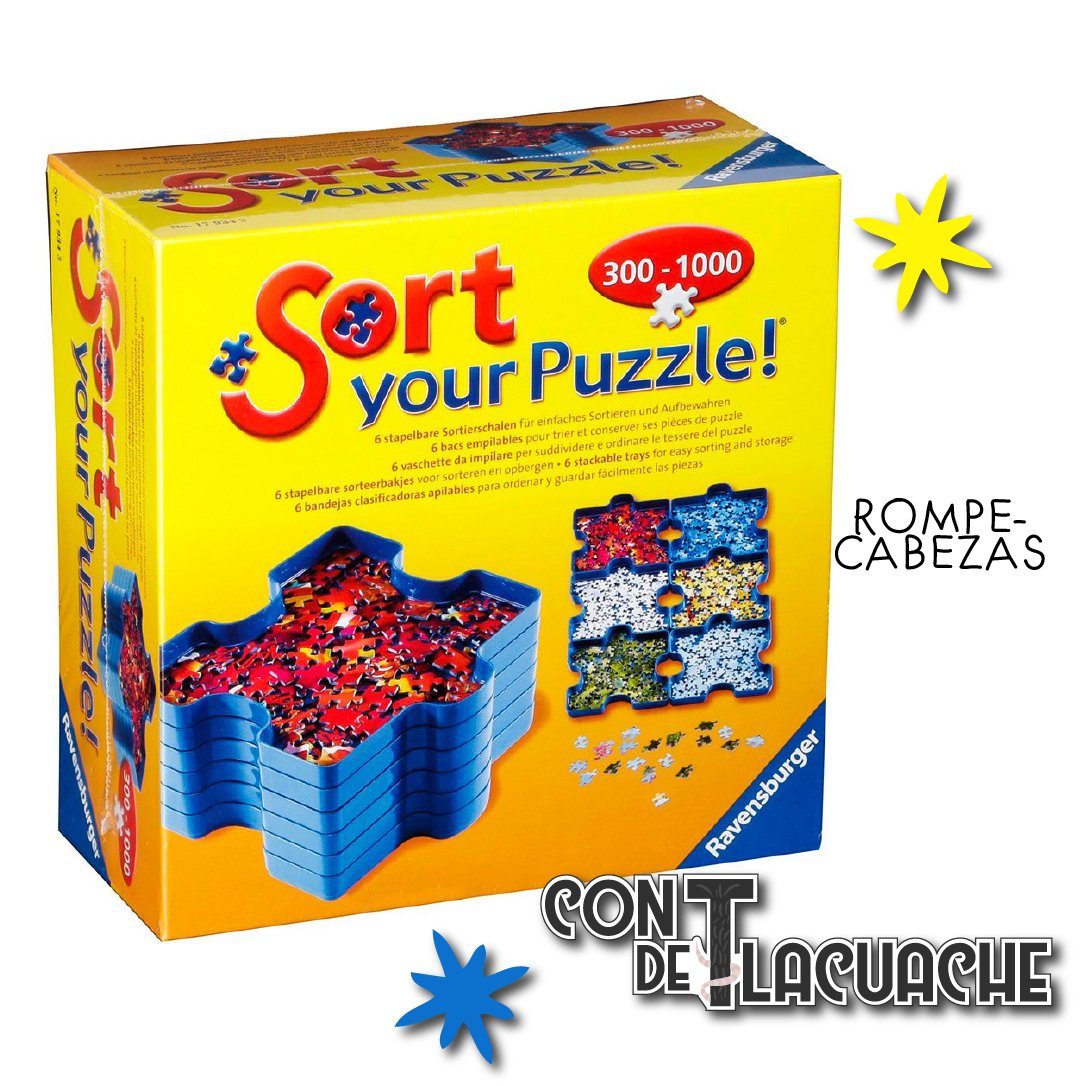 Clasificador de Piezas (300-1000 piezas), con 6 bandejas clasificadoras apilables en forma de piezas de rompecabezas para que guardes y ordenes tus piezas. Hechas de plástico resistente con la calidad de Ravensburger.