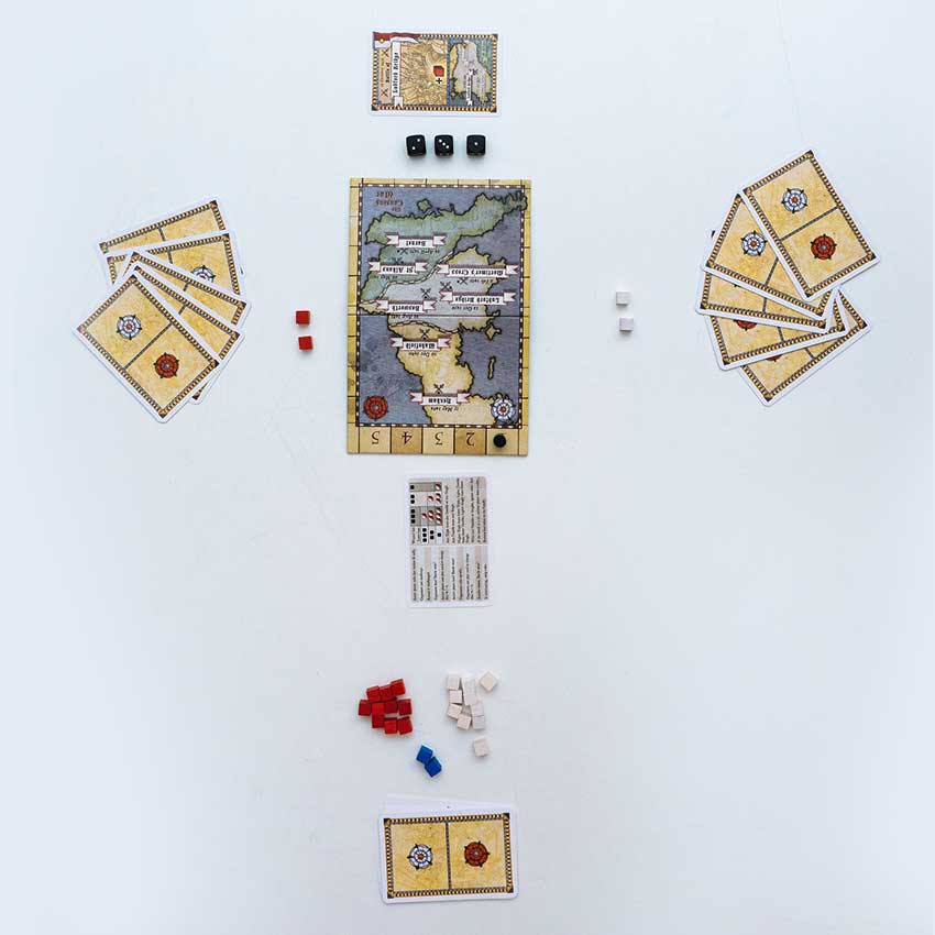 Las Guerras de las Dos Rosas se libraron entre las Casas de York y Lancaster durante más de tres décadas durante el siglo XV en Inglaterra. Ambas casas eran ramas de la familia real, por lo que las guerras se conocieron originalmente como ``La Guerra de los Primos``. Cada jugador representa una de las casas mientras luchan batallas y ganan influencia para controlar Inglaterra.