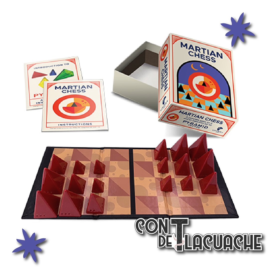 "Martian Chess" es un juego de estrategia similar al ajedrez, ¡pero con un giro alienígena! La propiedad de las piezas no se determina por el color, ¡sino por su ubicación en el tablero de juego! Para esta edición, hemos creado un nuevo y opaco color: ¡"Rojo Marciano"! Como el color no tiene ningún significado en este juego, todas las 18 piezas del set serán de este nuevo color.