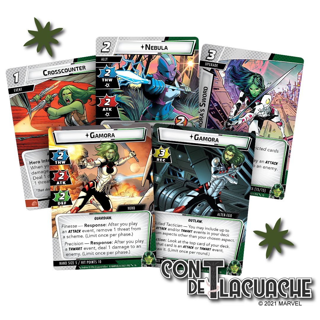 Gamora, la mujer más mortífera de la galaxia, ha sido entrenada y torturada desde una edad temprana por el loco titán Thanos. Ahora, esta letal guerrera llega a tus partidas de Marvel Champions: The Card Game para cortar a los súbditos enemigos y frustrar los planes del villano. Gamora es un ejemplo del equilibrio en todas las cosas. Con el Hero Pack de Gamora, obtendrás las quince cartas distintivas de este personaje, así como una gama completa de cartas de Agresión que te permitirán liderar a nuevos aliados en la batalla.