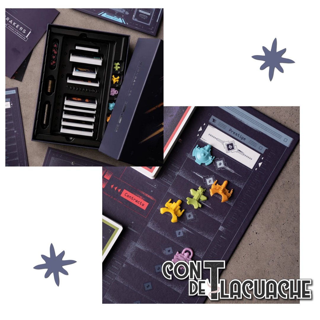 Moonrakers es un juego de construcción de mazos en el que los jugadores eligen Contratos para completar, ya sea solos o con la ayuda de Aliados, con el objetivo de ganar Prestigio y Créditos. La verdadera intriga radica en las negociaciones con tus Aliados, donde deberás acordar cómo se dividirán el Prestigio, los Créditos y el riesgo de Peligro de los Contratos. 🚀💼💰