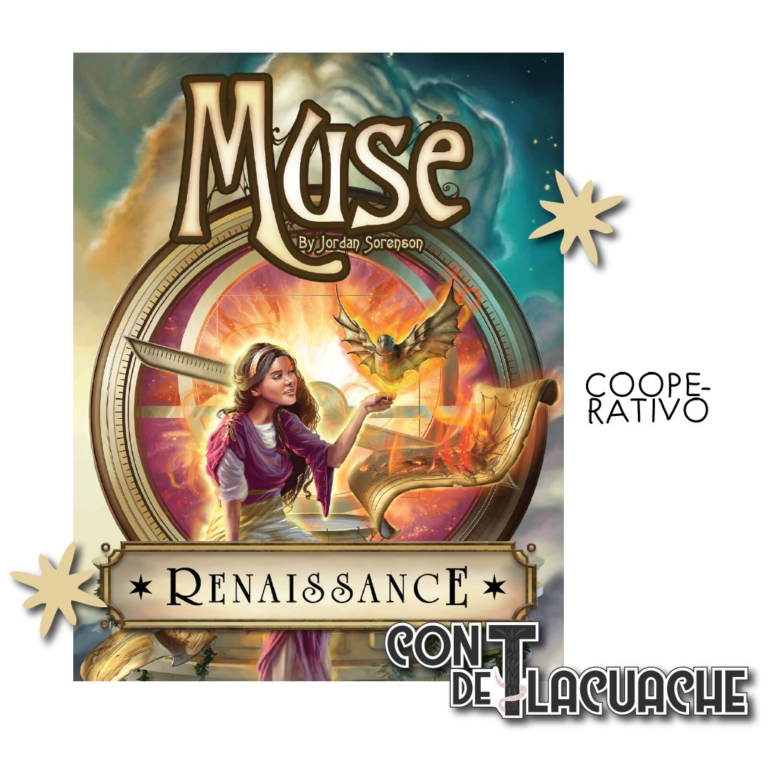 Compite o coopera con amigos usando pistas crípticas completamente nuevas e imágenes surrealistas en Muse: Renacimiento, un juego de fiesta impresionante con cartas de obra maestra completamente nuevas, una variedad de nuevas cartas de Inspiración, ¡y la introducción de fichas para ayudarte a votar y puntuar!