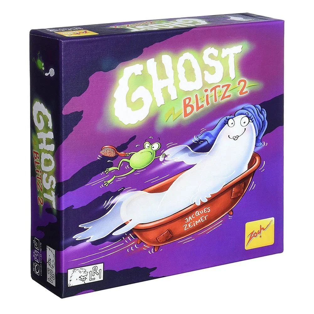 En esta emocionante versión mejorada de Ghost Blitz, encontrarás cinco objetos de madera dispuestos sobre la mesa, esperando a ser atrapados: un fantasma blanco, una rana verde, una bañera gris, un cepillo de pelo azul y una toalla de baño roja. Cada carta en la baraja muestra imágenes de dos objetos, con uno o ambos objetos coloreados de manera incorrecta. ¡Es un verdadero desafío de percepción!